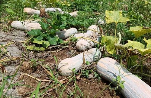 今年3月,父親把“健美蜜本”南瓜播種了,粒粒發(fā)芽,栽了100株,多的一點(diǎn)地栽了其它蔬菜。我?guī)缀趺恐芑乩霞乙惶?,一是看看父母,二是帶一些菜回?lái)。因?yàn)槭俏屹I(mǎi)的種子,也特別關(guān)注一些,每周看看,結(jié)瓜后,我還拍了一些南瓜照片。