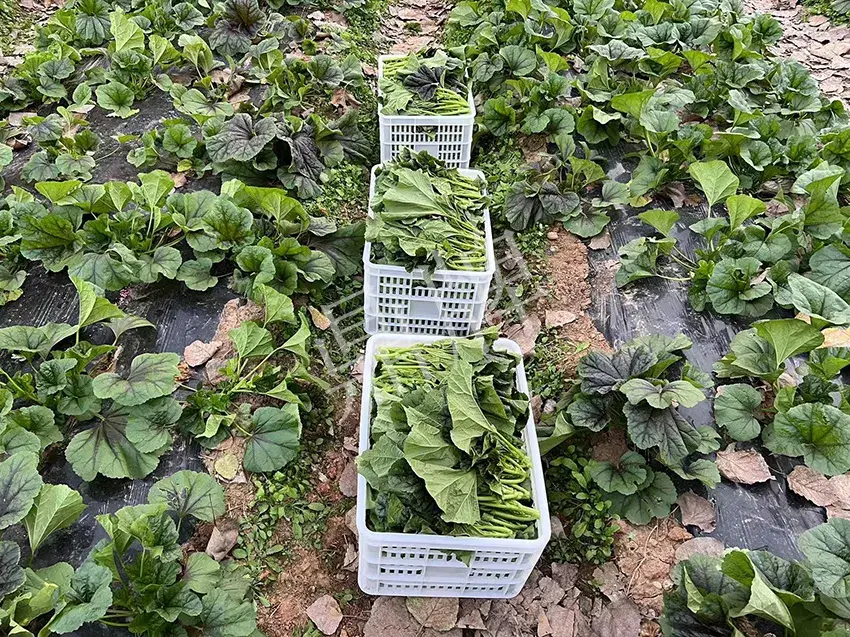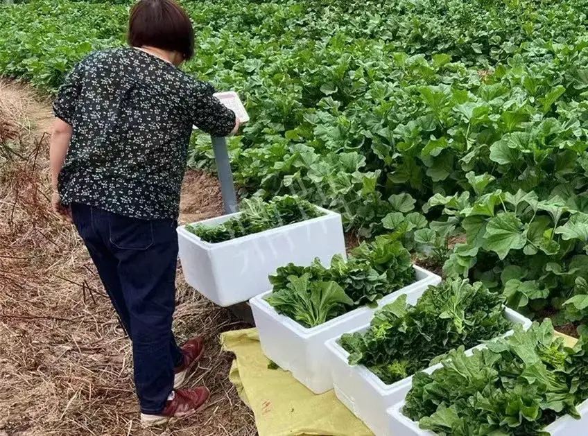 ▲ 雜交“東漢菜”在春季采收,箱內(nèi)有冰塊