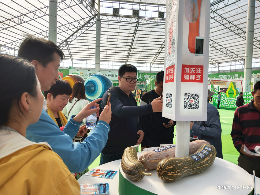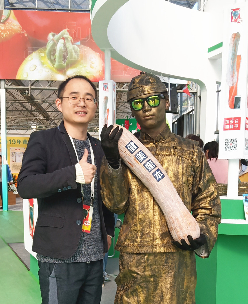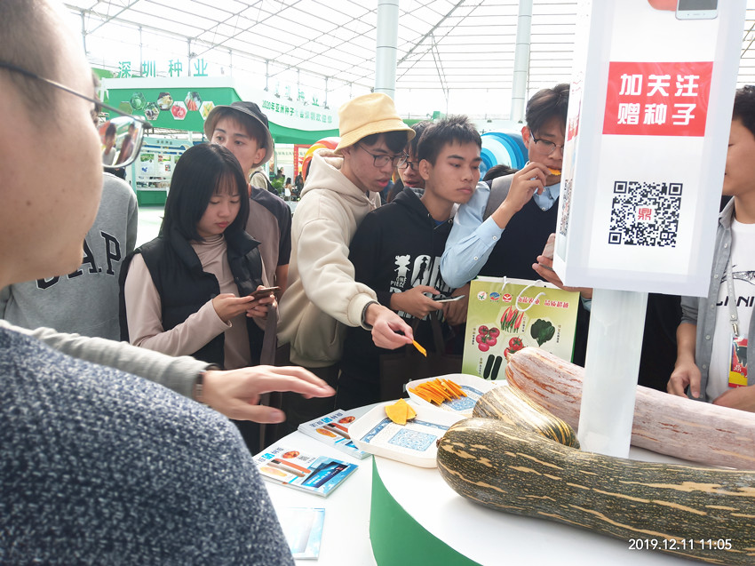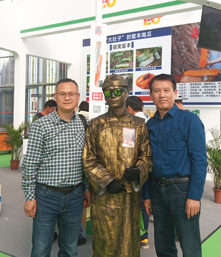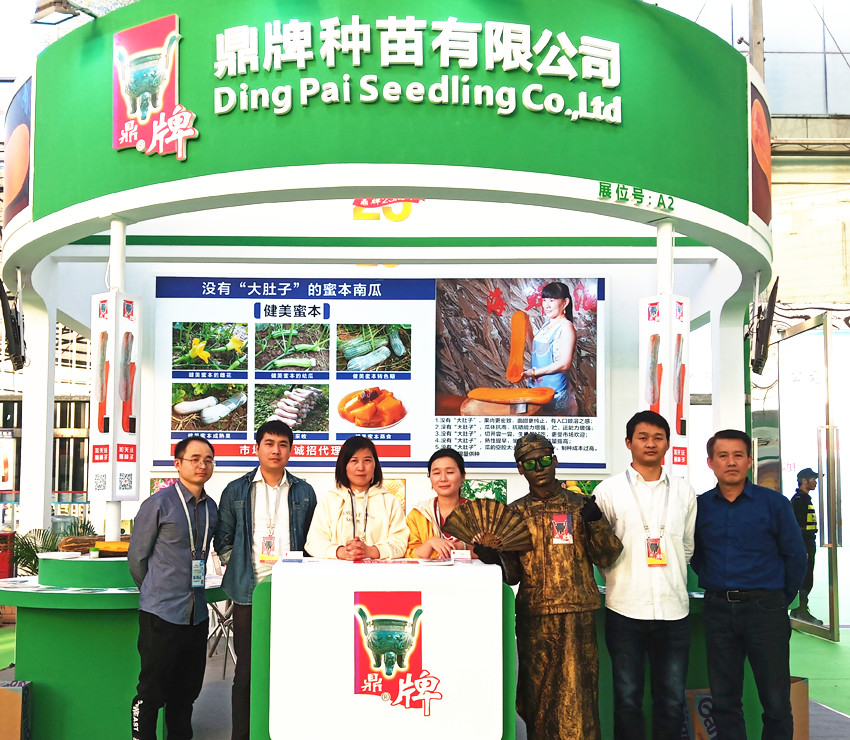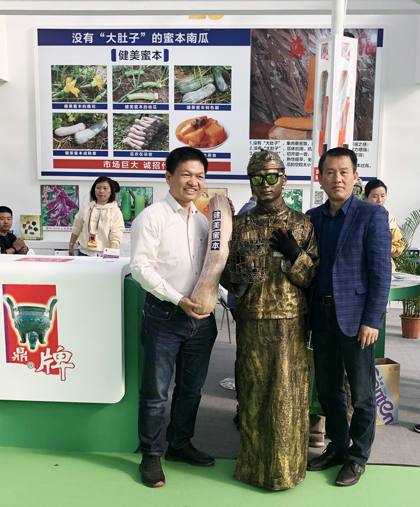 活動(dòng)現(xiàn)場(chǎng),鼎牌展位(A2)在展示大廳脫穎而出??蜕虃冏叩秸古_(tái)前紛紛停下腳步,被鼎牌獨(dú)創(chuàng)的“沒(méi)有大肚子的健美蜜本南瓜”所吸引。
