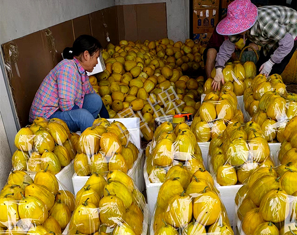 瓜農(nóng)在整理“金美2號”甜瓜,準(zhǔn)備上市